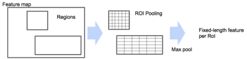 - ROI pooling : Regions을 Feature map에서 pooling 하여 bin으로 일정하게 나눔