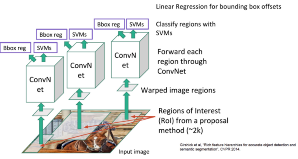 - 전체 이미지로부터 1개의 feature map과 Regions을 생성