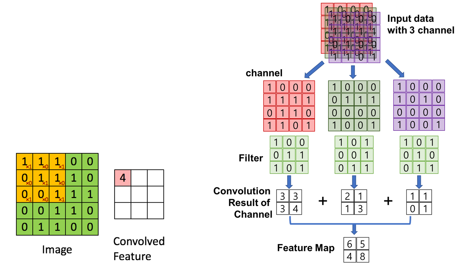 신경망의 입력 데이터는 1차원 형태로 한정되지만, 이미지는 3차원 데이터이므로 차원을 축소하는 과정이 필요합니다. 차원이 축소되면, 공간 정보가 손실이 되는 문제점이 발생합니다. 하지만, Convolution 필터를 이용하면 공간정보를 유지 가능하고, 인접된 이미지 데이터의 특징을 효과적으로 추출할 수 있습니다.