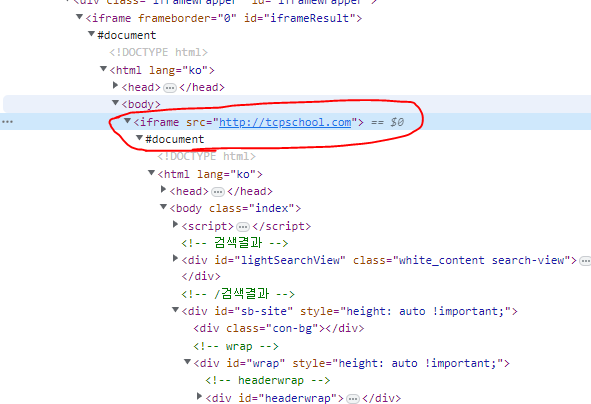 해당 페이지가 동적으로 html을 로딩하는지 확인하려면, 브라우저에서 개발자 도구를 활성화하여 iframe의 태그를 보면, 아래와 같이 iframe에 src가 지정되어 있다면, 동적 페이지로 구성되었다는 것을 알 수 있습니다.