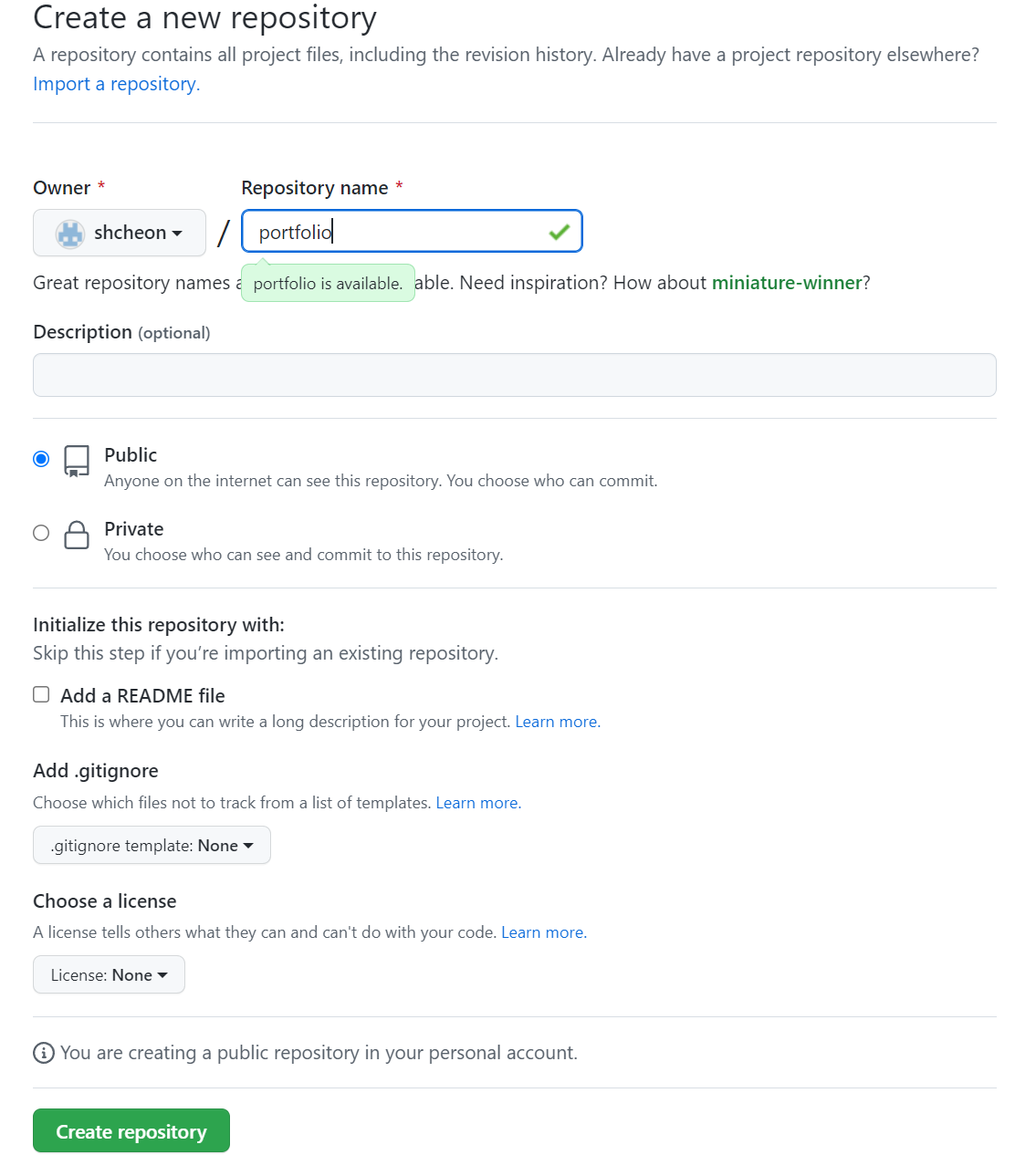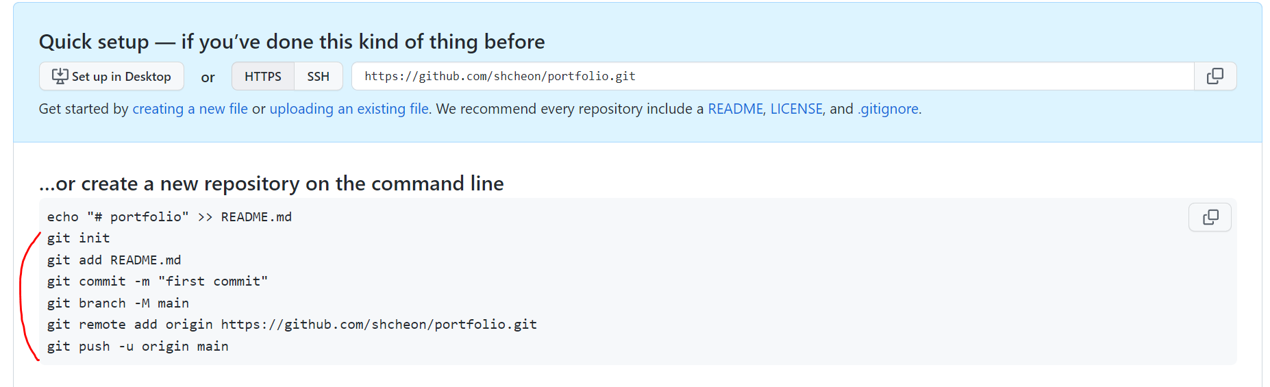 git remote add origin https://github.com/shcheon/portfolio.git