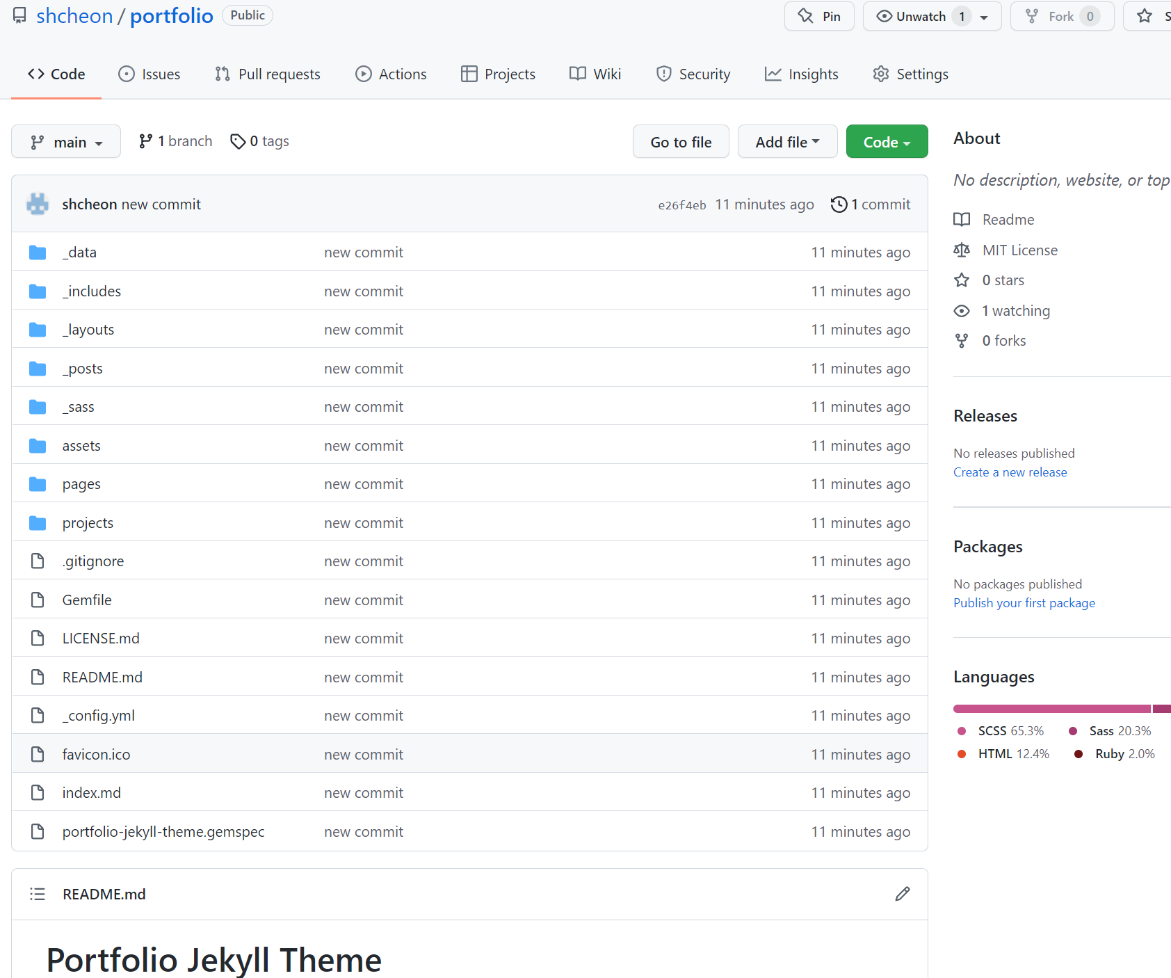예시로, Portfolio Jekyll Theme로 프로젝트를 다운로드하여서 로컬에서 사이트를 실행해보겠습니다.