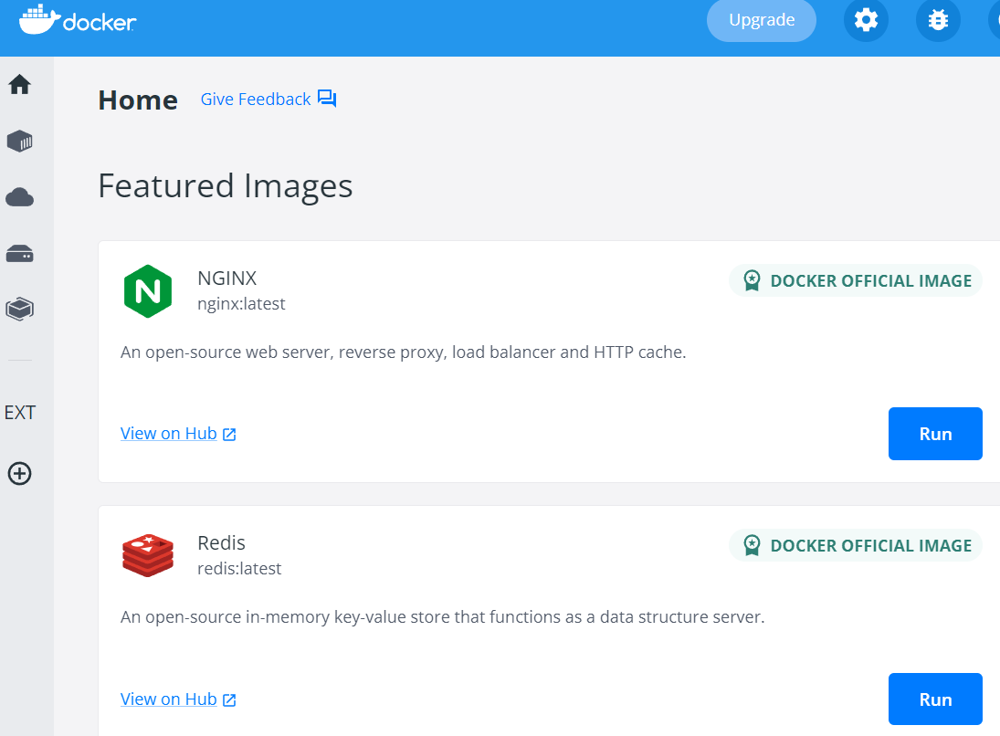 다운로드한 Docker Desktop Installer로 설치를 진행합니다. 별다른 설정 없이 Next 버튼을 클릭하여 Docker 설치를 진행합니다. 설치가 완료된 후 Docker를 실행해봅니다. 윈도우 가상화 환경 설정 후, 최초로 도커를 실행하면 Tutorial 화면이 나타납니다. 아래 화면은 Tutorial을 완료한 이후, 나타나는 화면입니다. 아래와 같이 Docker화면이 나타나면, 가상화 사용 설정 완료 및 Docker설치가 완료된 것입니다.